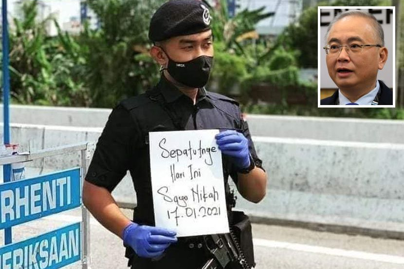 PENGORBANAN seorang pegawai polis yang mengambil keputusan menangguhkan perkahwinannya demi keutamaan kepada tugas, mendapat pujian daripada Datuk Seri Dr Wee Ka Siong. Menteri Pengangkutan itu memuji Ahmad Zaim Nasreen Musa, yang sepatutnya melangsungkan pernikahan bersama pasangan, Mas Ayuvita Azizul pada Ahad (17 Januari) di Gemas, Negeri Sembilan. "Demi tugas, demi negara, anggota keselamatan kita sedia berkorban apa saja. "Anggota keselamatan, Ahmad Zaim Nasreen bin Musa sepatutnya meraikan hari bahagia beliau dengan pasangannya, Mas Ayuvita binti Azizul di Felda Palong 8, Gemas, Negeri Sembilan hari ini 17 Januari 2021. "Namun demi tanggungjawab kepada negara, Ahmad Zaim menangguhkan hari bahagianya. Satu pengorbanan yang amat besar," tulis Dr Wee di laman Facebook pada Ahad. Beliau turut memuat naik gambar Ahmad Zaim yang memegang nota bertulis 'sepatutnya hari ini saya nikah 17.01.21'. Dalam pada itu, Dr Wee turut menzahirkan penghargaan terhadap pada petugas barisan hadapan di atas pengorbanan mereka. "Hargailah jasa dan pengorbanan petugas barisan hadapan negara kita," tulisnya lagi - THE STAR Nak macam-macam info? Join grup Telegram mStar!
