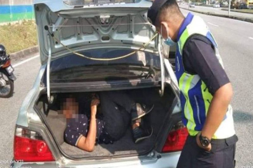 Dalam kejadian yang berlaku petang Rabu di Lebuhraya Butterworth-Kulim (BKE), seorang wanita dikenakan kompaun kerana melanggar prosedur operasi standard (SOP) apabila menyembunyikan anak tirinya di dalam but kereta untuk merentas daerah.