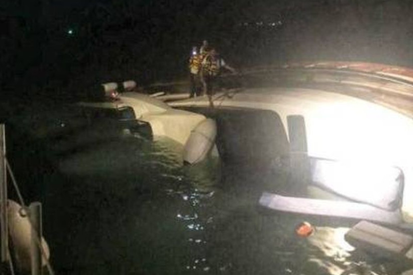 Kapal persiaran yang dinaiki oleh empat kru hampir karam selepas terlanggar objek pada kedudukan 0.3 batu nautika selatan Pulau Lalang, Langkawi pada Sabtu. Foto: Sinar Harian