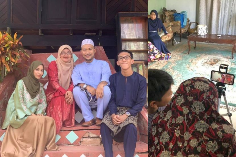Foto kiri menunjukkan Sharina (dua, kanan) bersama keluarga di Tanjung Piandang, Perak, manakala gambar kanan ibunya membuat video call di Gombak, Selangor.