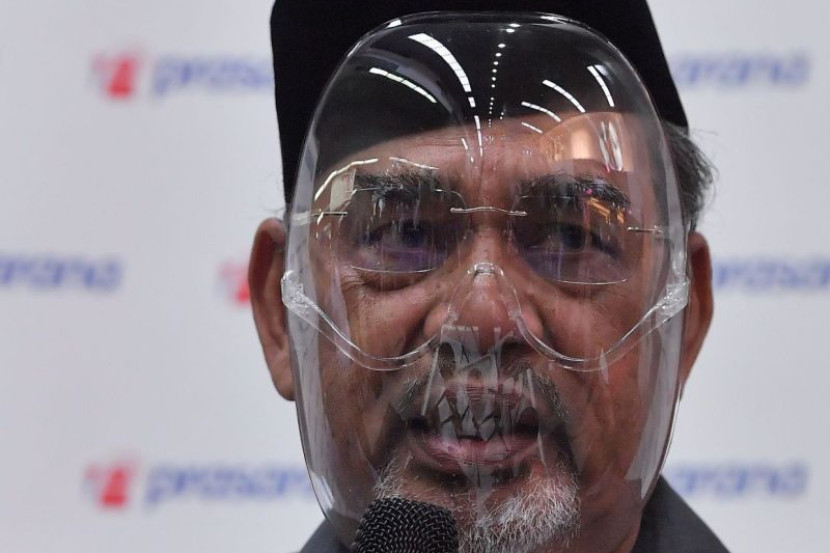 Datuk Seri Tajuddin Abdul Rahman tidak memakai pelitup muka ketika mengadakan sidang media susulan insiden pelanggaran tren, Selasa lalu. Foto: Bernama