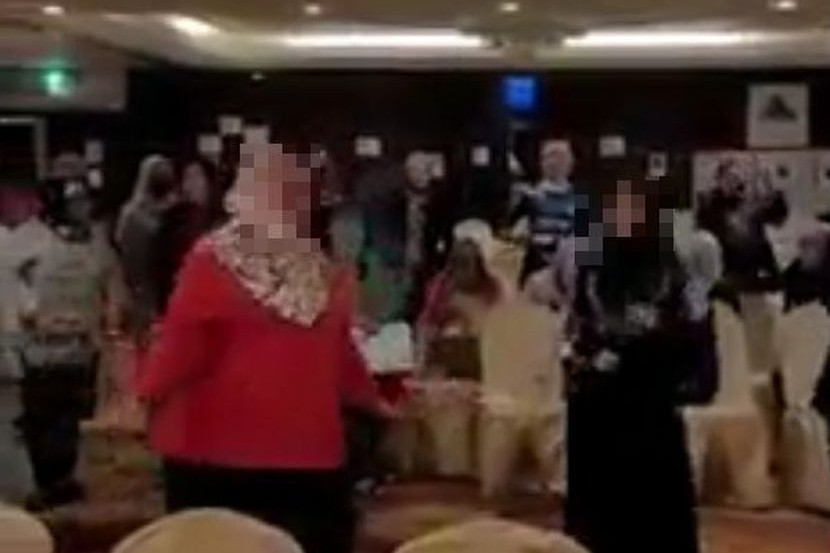 Dalam video yang tular itu, beberapa individu kelihatan sedang menari dan berdiri berdekatan antara satu sama lain dengan ada antara mereka yang tidak memakai topeng muka.