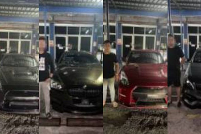 Empat lelaki menerima padah apabila ditahan gara-gara menguji kelajuan kereta mewah milik mereka di lebuhraya. Foto: Sinar Harian