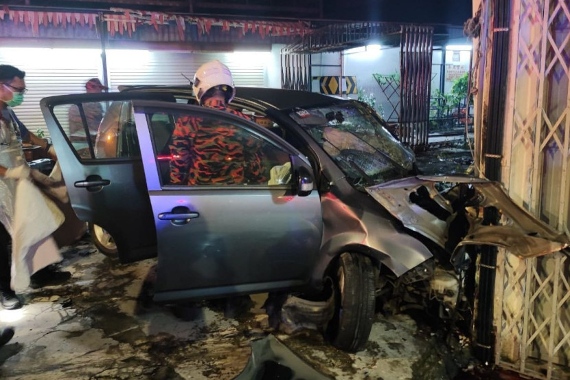 SEORANG lelaki maut di tempat kejadian selepas kereta yang dipandunya merempuh dinding konkrit sebuah bangunan di Muar, pada Selasa.