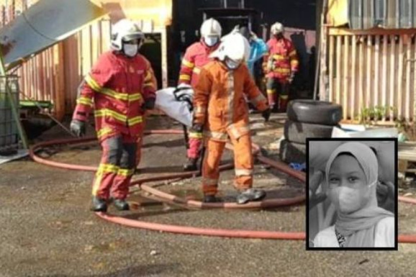 Misha Kasih, 11, rentung dalam kebakaran yang berlaku di sebuah kilang pembuatan getah sintetik di Kawasan Perindustrian Bakar Arang di Sungai Petani, Kedah.