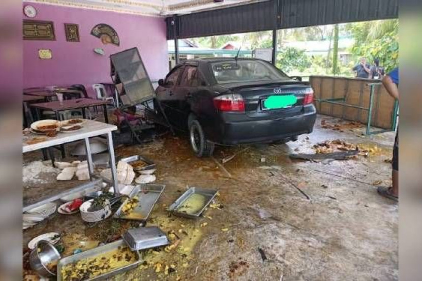 "Kenderaan berkenaan gagal dikawal lalu melanggar sebuah motosikal yang diletakkan di kawasan parking sebelum merempuh masuk ke dalam kedai makan tersebut," katanya dalam kenyataan pada Selasa.