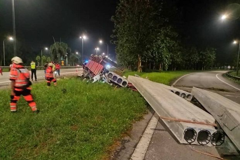 SEORANG pemandu lori yang membawa tiang konkrit maut akibat dihempap muatannya itu selepas kenderaan yang dipandu terbabas di Lebuhraya Utara Selatan.