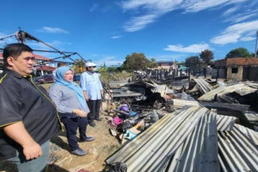 Shahelmey melawat lokasi tapak kebakaran dan bertemu dengan penduduk yang terjejas di Kampung Contoh, Petagas, Putatan. Foto: Sinar Harian.