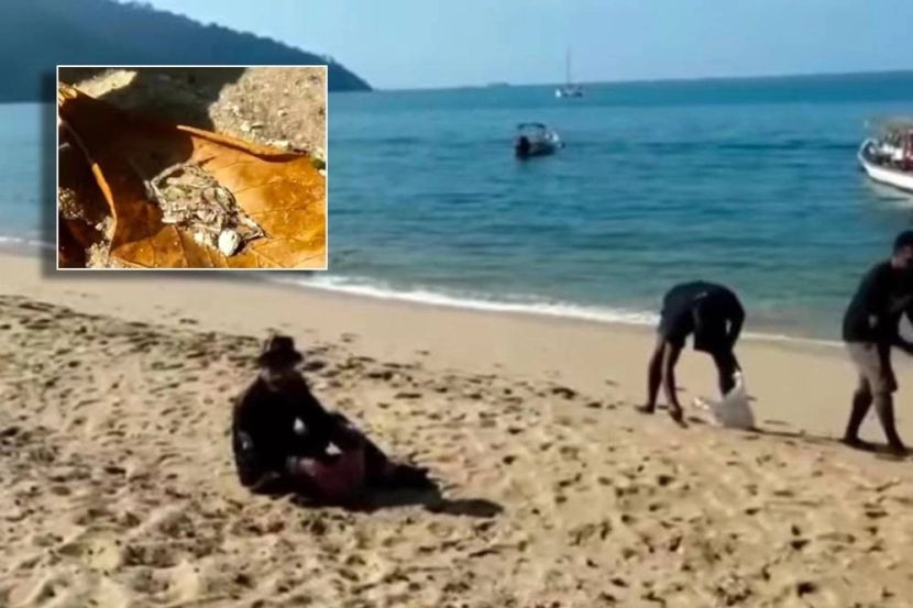 Beberapa video menunjukkan orang ramai mengutip ikan bilis di pantai berkenaan, tular di media sosial sejak Ahad.