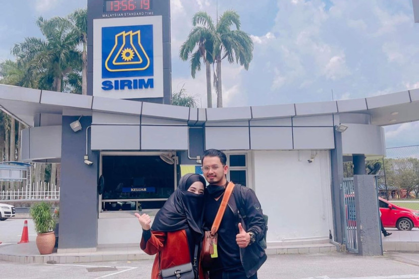 Dia turut berkongsi foto di hadapan pintu pagar utama Sirim.