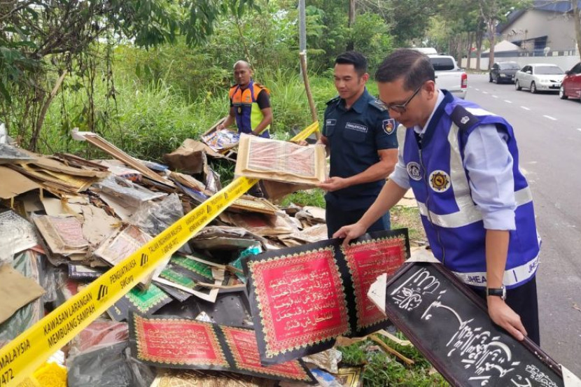 INDIVIDU yang membuang hiasan dinding bermotifkan ayat al-Quran di sebuah kawasan perindustrian di Nilai, Negeri Sembilan, diburu polis.