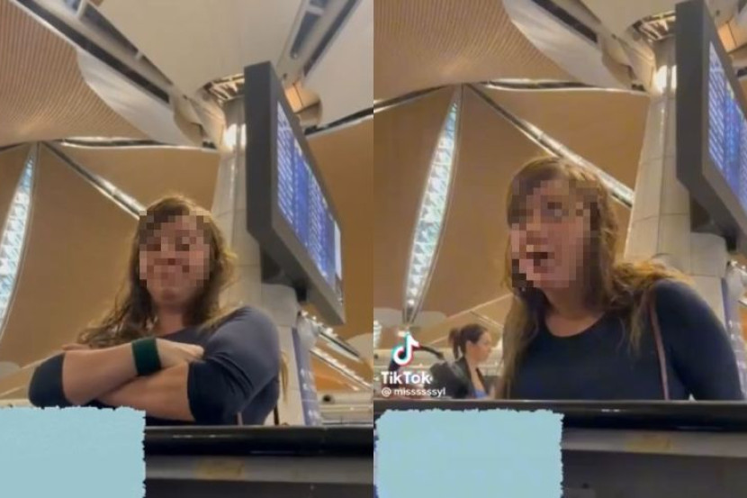 Menerusi klip video berdurasi 16 saat yang dikongsi oleh pengguna TikTok @missssssyl, wanita itu dilihat mengeluarkan kata-kata kesat terhadap seorang kakitangan darat sebuah syarikat penerbangan.
