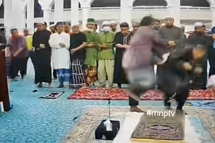 Tular rakaman seorang lelaki kurang siuman menyerang imam di Masjid Negeri Sultan Ahmad 1, pagi Ahad. Foto: Media sosial