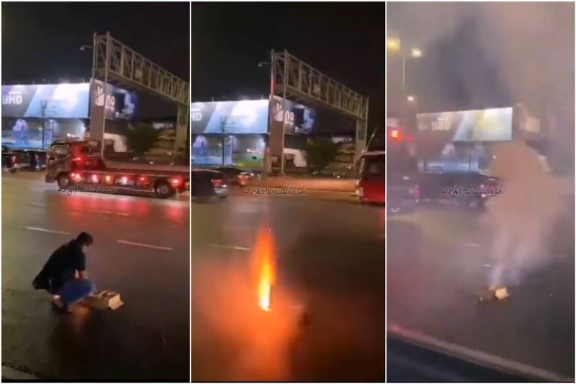 Melalui satu perkongsian di laman Facebook Inforoadblock, seorang lelaki melakukan perbuatan tidak bertanggungjawab dengan membakar sekotak bunga api di tepi jalan raya yang sedang sibuk dengan kenderaan.