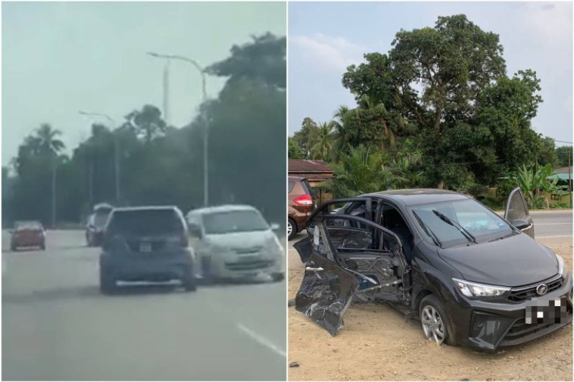 Pemandu atau penumpang di belakangnya yang mengesyaki ada sesuatu tidak kena mula merakam pergerakan mencurigakan kereta tersebut menggunakan telefon pintarnya.