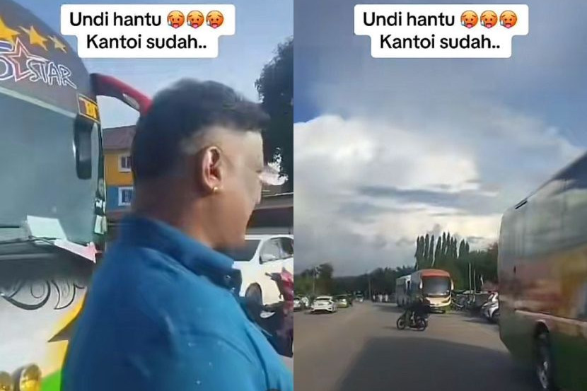 Menerusi rakaman video yang tular itu, pemandu salah sebuah bas 'ditahan' orang ramai di kawasan tersebut selepas dikatakan membawa pengundi hantu.