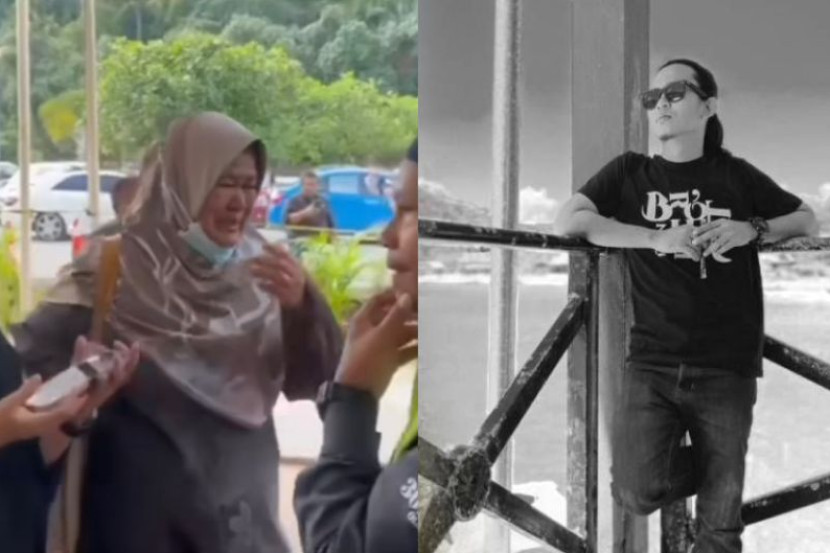 Ibu Allahyarham, Jamilah Ismail tidak dapat menahan kesedihan ketika jenazah anaknya dibawa masuk ke dalam van jenazah di Masjid Jamek Ar Rahimiah, Klang.