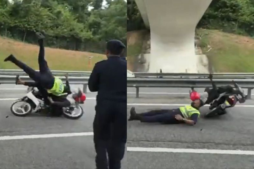 Menerusi video yang dikongsi di media sosial, anggota berkenaan dilihat terpelanting dan terhantuk kepalanya akibat rempuhan yang berlaku dalam sekelip mata itu.