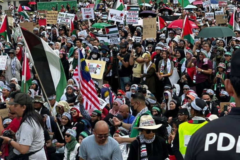 ORANG ramai berkumpul dalam perhimpunan aman bagi menunjukkan solidariti terhadap rakyat Palestin, di Dataran Merdeka, Kuala Lumpur pada Ahad. Penyokong yang terdiri daripada pelbagai kaum termasuk warga asing hadir seawal pukul 9 pagi untuk perhimpunan yang bertemakan 'Freedom For Palestine' (Kebebasan untuk Palestin). Ia merupakan anjuran badan bukan kerajaan (NGO) Viva Palestina Malaysia (VPM) dan Humanitarian Care Malaysia (MyCARE). Beberapa aktivis daripada NGO memberi ucapan menggesa supaya konflik Israel-Palestin dihentikan. Anggota polis turut bertugas memantau perhimpunan yang berakhir pada pukul 1 tengah hari. - The Star Jadilah sebahagian daripada geng mStar! Follow kami di Telegram, Twitter, TikTok, Facebook, Instagram dan YouTube