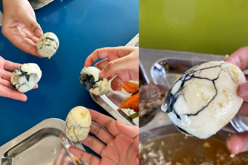 "Dah nampak tembelang macam ni masa kupas telur tapi masih sajikan dekat anak-anak. Mana hati perut mereka ya," katanya menerusi hantaran di Facebook.
