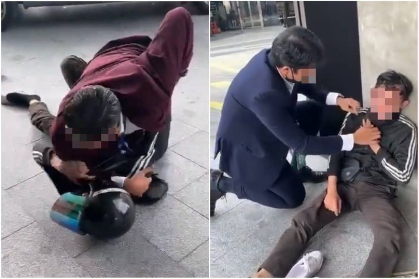 KECOH rakaman video di platform X menunjukkan pergelutan antara rider penghantar makanan dan pengawal keselamatan.