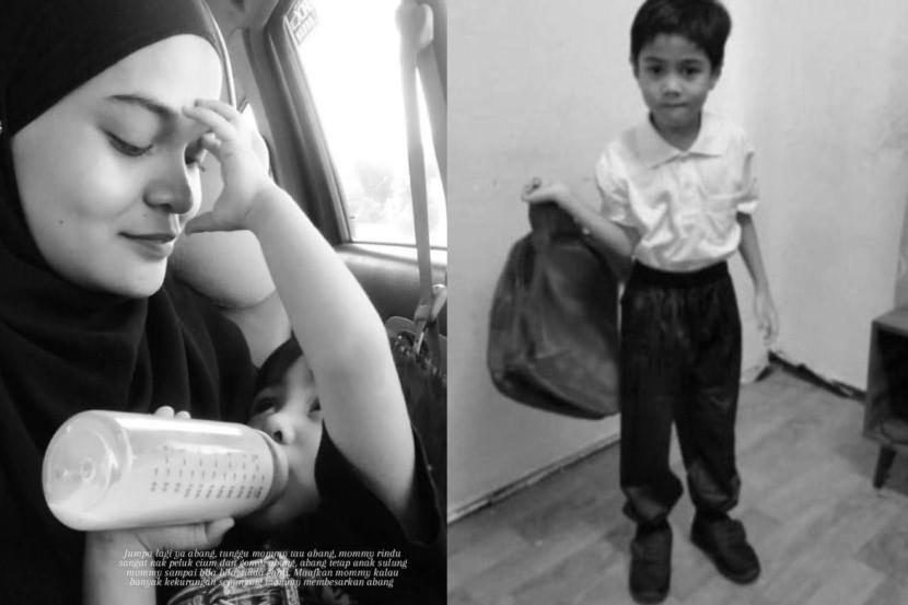 "Maafkan mommy kalau banyak kekurangan sepanjang mommy membesarkan abang," tulisnya.