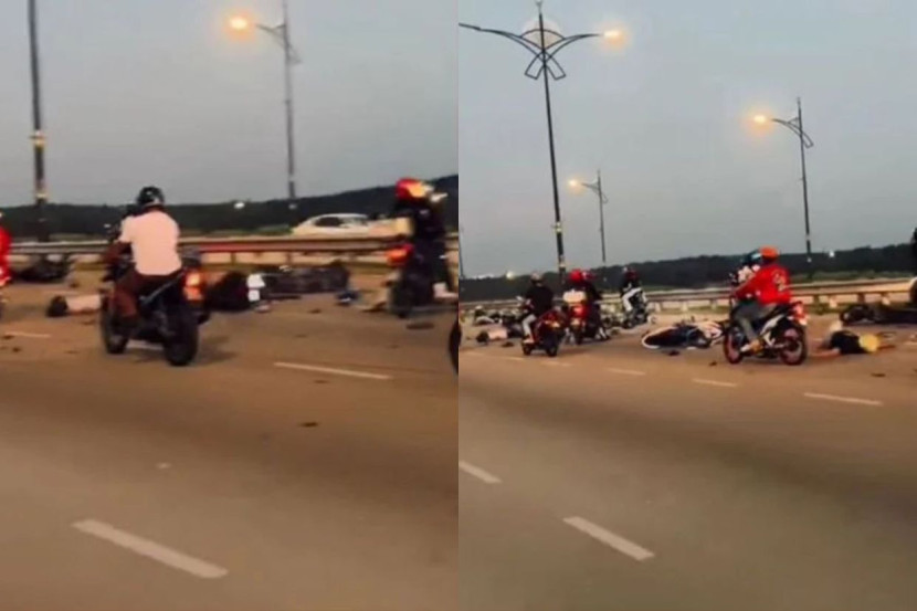 "Ia menyebabkan sebuah motosikal yang bergerak lurus tidak sempat mengelak lalu melanggar bahagian belakang kereta jenis Kia tersebut disusuli dengan perlanggaran empat motosikal sesama sendiri yang datang dari arah belakang," katanya menerusi kenyataan pada Selasa.
