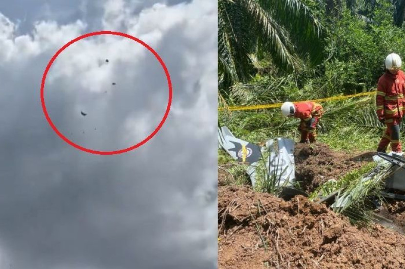 Sebahagian komponen pesawat itu dilihat jatuh bertebaran di kawasan ladang sawit serta kediaman penduduk.
