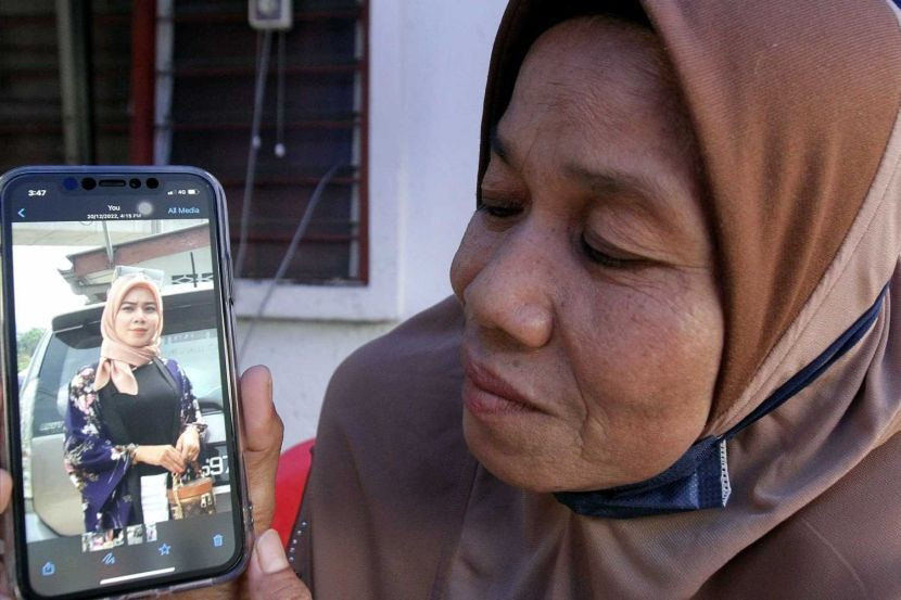 Siti Esah Hassan menunjukkan gambar anak sulungnya, Allahyarham Nurul Azwani yang terkorban dalam tragedi tanah runtuh di Batang Kali pada Disember 2022. -Gambar Shaari Chemat/The Star