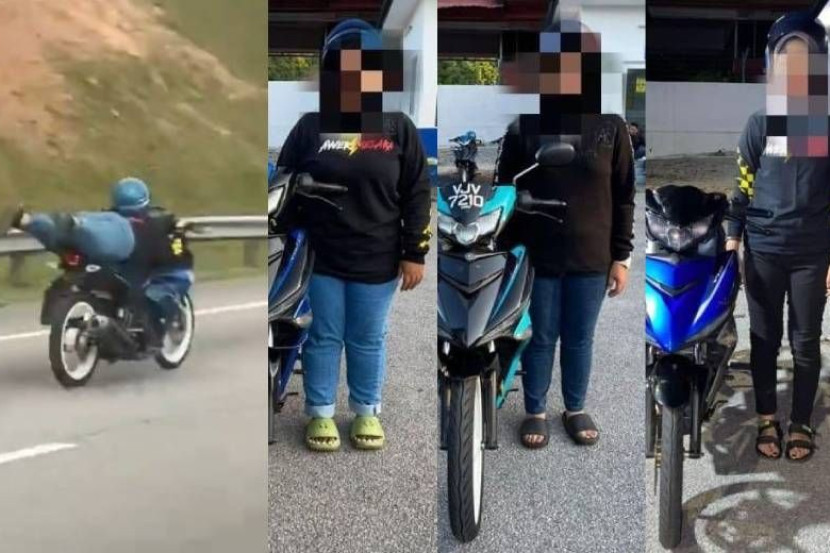 AKIBAT menunggang secara merbahaya dengan mempamerkan aksi ‘Superman’, tiga gadis ditahan polis.