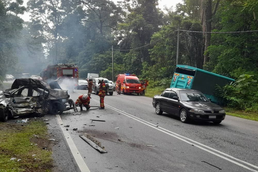 DUA individu terbunuh dalam kemalangan melibatkan pertembungan antara sebuah kereta jenis BMW dan lori di Jalan Bukit Mantin, Negeri Sembilan. Komander Operasi Balai Bomba dan Penyelamat Mantin, Muhammad Efeendy Rahmad berkata dua mayat yang rentung ditemukan di dalam sebuah kereta mewah yang hangus terbakar dalam kejadian pada 10.20 pagi, Isnin. "Jentera tiba 10 minit kemudian dan mendapati sebuah kereta sedang terbakar. Kami melakukan operasi pemadaman dan api berjaya dikawal lima minit kemudian," katanya dalam satu kenyataan. Tambah Muhammad Efeendy, identiti mangsa yang terkorban dalam nahas masih belum dikenal pasti. Mayat mangsa dihantar ke Hospital Tuanku Ja'afar, Seremban untuk proses bedah siasat. Tiga mangsa yang menaiki lori mengalami kecederaan ringan dan dihantar ke hospital untuk rawatan lanjut. - The Star Jadilah sebahagian daripada geng mStar! Follow kami di WhatsApp, Telegram, Twitter, TikTok, Facebook, Instagram dan YouTube
