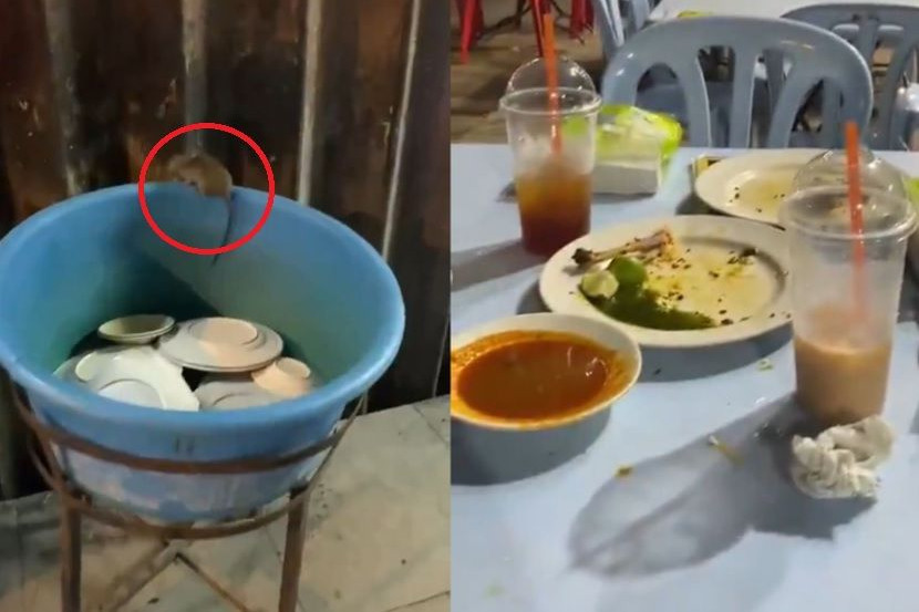 Menerusi video yang dirakam individu itu, kelihatan seekor tikus sedang asyik bermain di dalam besen yang digunakan bagi meletakkan pinggan mangkuk.