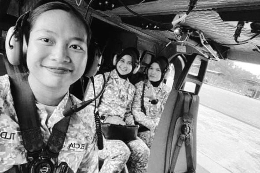 Terdahulu, tular sekeping foto memaparkan tiga anggota tentera wanita yang sedang berada di dalam sebuah helikopter.