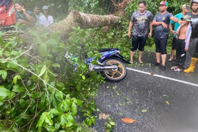 SEORANG penunggang motosikal maut selepas dihempap pokok tumbang dalam kejadian di Kampung Bandar Hilir, Sik, Kedah pada petang Ahad.