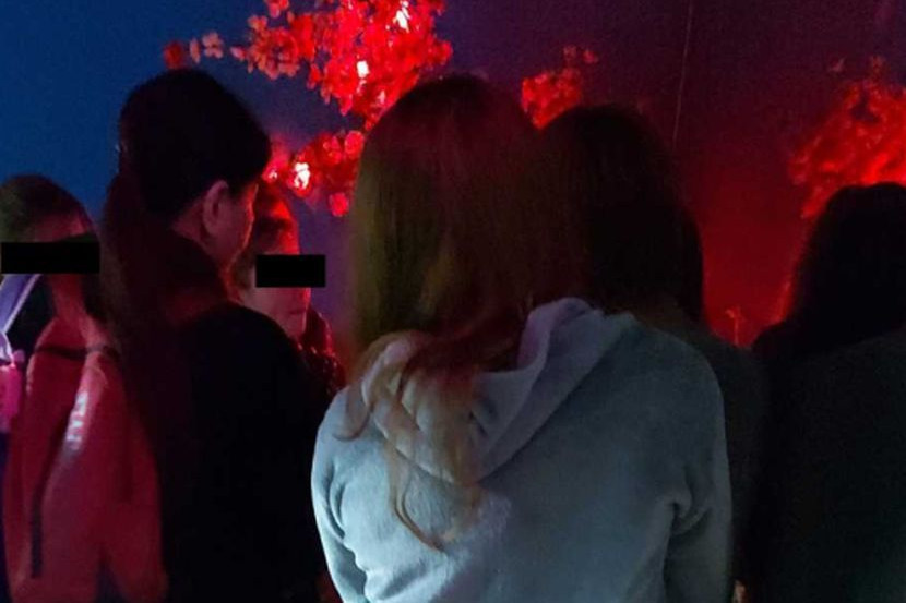 Kelab itu dihiasi dengan hiasan bertemakan Halloween termasuk risalah yang mempromosikan acara tersebut.