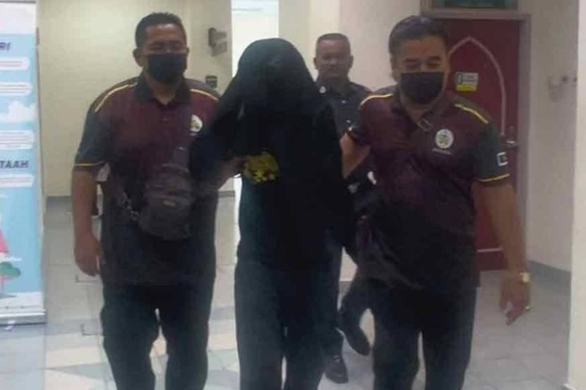 Tertuduh (tengah) dibawa ke Mahkamah Tinggi Syariah Terengganu atas dakwaan melakukan kesalahan khalwat berulang. Foto Sinar Harian