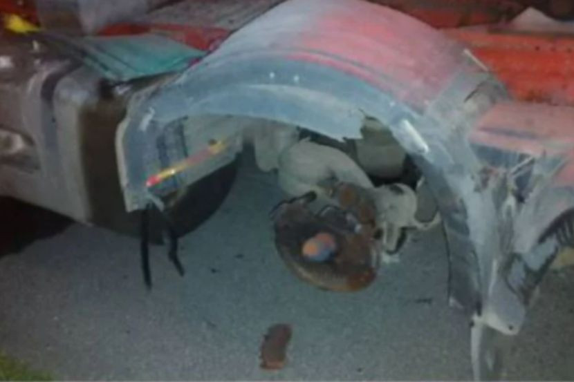 SEORANG wanita tersepit di tempat duduk hadapan selepas kenderaan yang dinaiki merempuh tayar sebuah lori tangki yang tercabut, dalam kejadian pada Isnin malam.