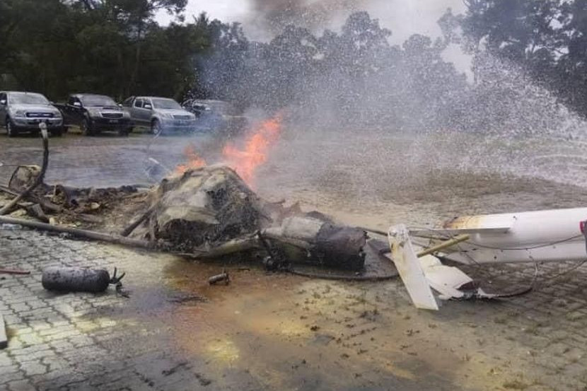 Difahamkan, helikopter berkenaan terbakar ketika mendarat untuk mengisi minyak.