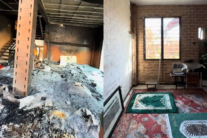 Kiri rumah mangsa yang terjejas teruk, kanan bilik solat dalam keadaan baik. Foto TikTok NajwanHalimi