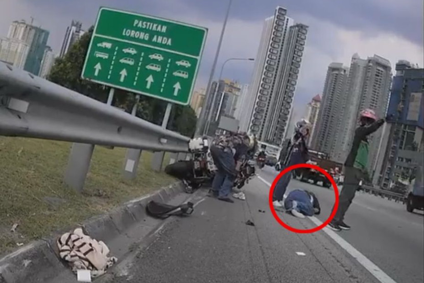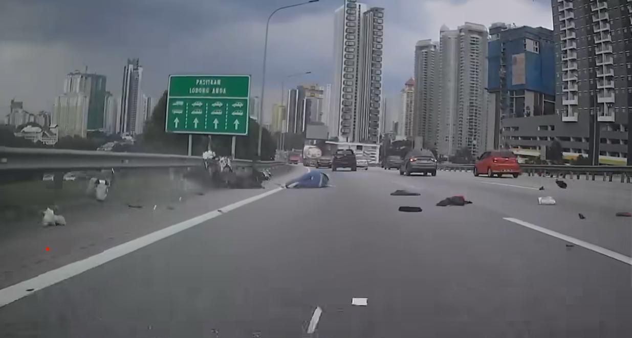 Insiden yang berlaku pada Sabtu di Lebuhraya NKVE menghala ke Tol Jalan Duta itu menyaksikan dua mangsa, penunggang dan pembonceng motosikal tercampak ke bahu jalan selepas dilanggar.
