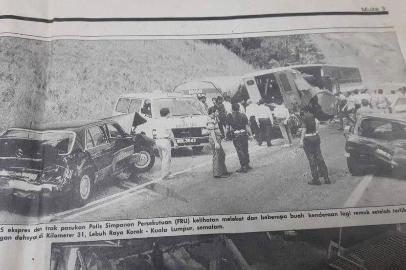 SEJARAH berulang!Begitulah yang dapat diungkapkan mengenai kemalangan ngeri membabitkan sekumpulan anggota Pasukan Simpanan Persekutuan (FRU) di Teluk Intan pada Selasa. Nahas hari ini ternyata mengimbas semula tragedi sama lebih tiga dekad lalu yang berlaku di Lebuhraya Karak pada 28 Februari 1990.Dalam tragedi hitam itu, seramai 11 anggota FRU daripada Trup 4B, Pusat Latihan Polis (PULAPOL) Kuala Lumpur disahkan meninggal dunia.Antara mangsa yang terkorban dalam tragedi pada 1990.Trak dinaiki mereka dirempuh oleh sebuah bas ekspres yang hilang kawalan akibat kerosakan brek ketika menuruni cerun.Lebih tragis, trak FRU itu kemudiannya dihentam oleh sebuah lagi lori tangki yang mahu mengelak perlanggaran berkenaan.ARTIKEL BERKAITAN: Angka kematian meningkat, 10 terkorban nahas FRU dengan lori pasirARTIKEL BERKAITAN: Tragis... 8 anggota FRU maut selepas terlibat nahas dengan lori muatan batuEmpat orang awam turut terbunuh akibat kemalangan itu.Dalam tragedi hari ini pula, sembilan anggota FRU maut selepas trak dinaiki mereka bertembung dengan sebuah lori yang membawa muatan batu.Pemandu lori muatan batu turut terkorban, menjadikan angka kematian seramai 10 orang.Semoga roh mangsa dua tragedi ini bersemadi dengan tenang.Kesemua anggota FRU yang terkorban juga akan sentiasa dikenang sebagai wira negara buat selama-lamanya.