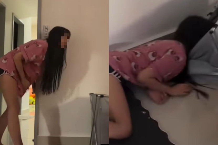 Video itu turut menunjukkan gadis terbabit rebah dalam keadaan terketar-ketar.
