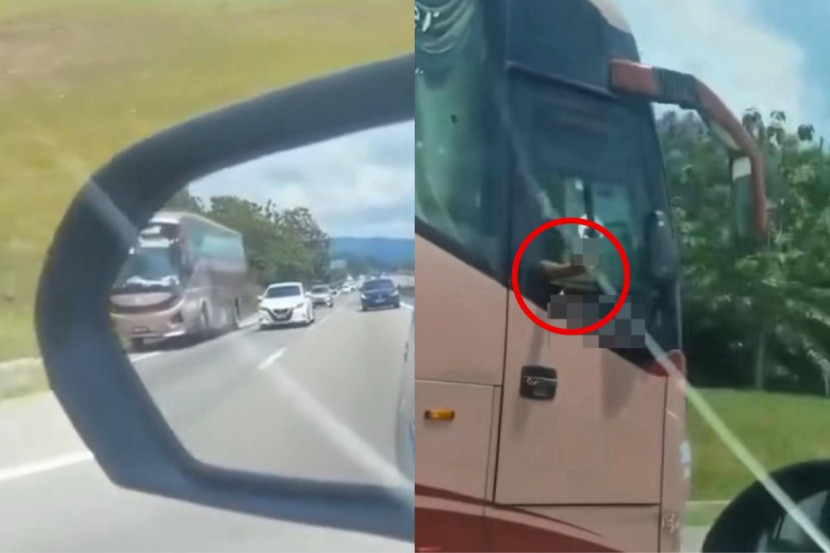 Terdahulu, ketika menyedari cara pemanduannya dirakam, pemandu bas terbabit dilihat membuka tingkap dan menunjukkan isyarat lucah jari tengah kepada perakam.