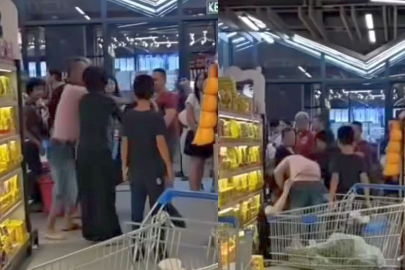 SUASANA di sebuah pasar raya kecoh apabila dua pelanggan bergaduh ketika sedang beratur di hadapan kaunter pembayaran.