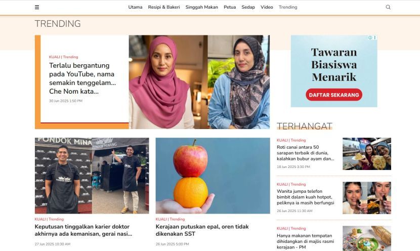 Segmen Trending mengetengahkan berita semasa berkaitan kulinari.