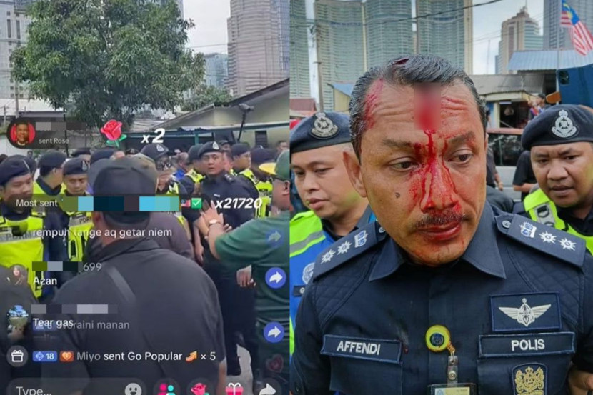 Dalam satu video yang dikongsi di TiKTok, kelihatan orang ramai menjerit sambil menolak anggota polis yang sedang berkawal.