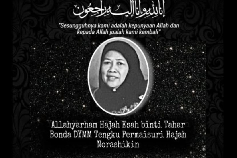 BONDA kepada Duli Yang Maha Mulia (DYMM) Tengku Permaisuri Selangor, Tengku Permaisuri Norashikin, iaitu Esah Tahar, meninggal dunia pada pagi Ahad.