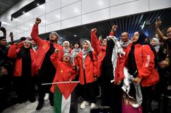 Pesawat Emirates Airbus 380 dari Istanbul, Turkiye yang membawa kumpulan sukarelawan itu mendarat sekitar 10 malam, disambut dengan laungan takbir, sorakan, dan tepukan gemuruh daripada ahli keluarga, rakan-rakan serta penyokong misi kemanusiaan tersebut.