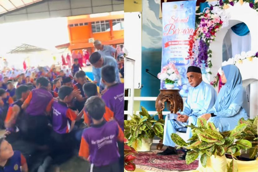 “Terima kasih kepada guru besar, semua guru dan pelajar yang sudi meraikan saya dengan begitu meriah. Saya dan isteri sangat terharu apabila diraikan seperti pengantin baru.