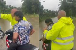 Seorang lagi lelaki kemudian menendangnya, membuang barang-barangnya dan menyimbahnya dengan air.